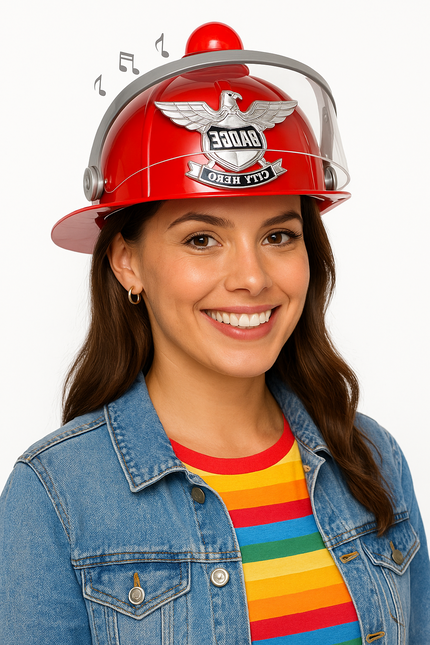 Ob Junggesellen-/Junggesellinnenabschied, Partyurlaub oder Karneval: Dieser rote Feuerwehrhelm mit Visier zündet den Spaß-Faktor. Per „Try-Me“-Button startet das rot/blau blinkende Licht samt Sirene – perfekt für Videos und legendäre Gruppenfotos.