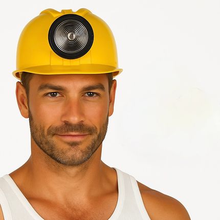 Dieser gelbe Bauarbeiter-Helm mit Frontlampe sorgt im Handumdrehen für den authentischen Baustellen-Look – perfekt für Karneval, Mottopartys, Theater, Junggesellenabschiede oder Fotoprojekte.