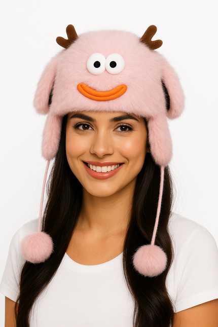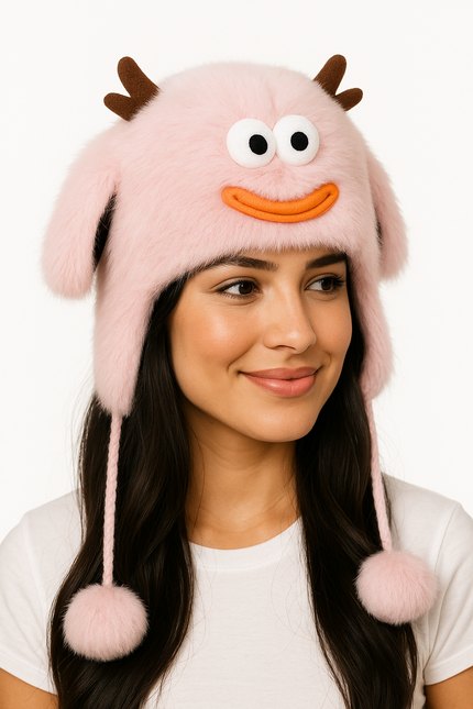 Weiche Monster Flausch-Mütze mit Ohrklappen Rosa Damen warme Wintermütze