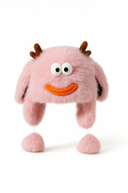 Warm, weich, witzig: Die Flausch-Mütze in zartem Rosa kombiniert gemütlichen Winterkomfort mit einem verspielten Monster-Look.
