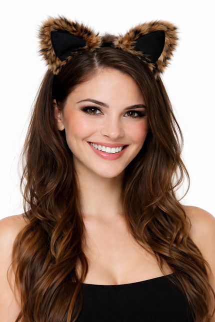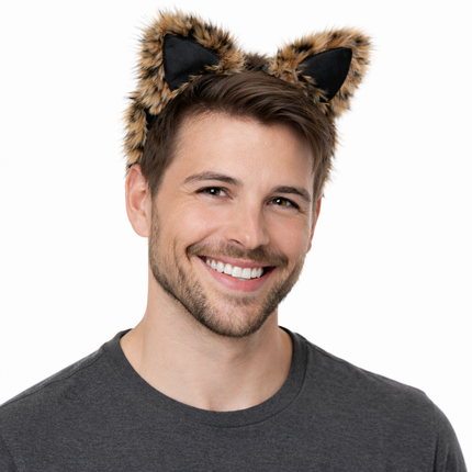 Mit diesem flauschigen Leoparden-Haarreif mit Katzenohren wirst du zum Hingucker auf jeder Party! Der Kopfschmuck ist mit Kunstfell im Leoparden-Look bezogen und passt sich flexibel an jede Kopfgröße an – egal ob für Damen oder Herren.
