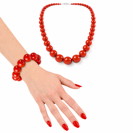 Sie möchten Ihr 50er/70er/80er Jahre Kostüm aufpeppen? Dann sollten Sie unbedingt bei diesem auffallenden Schmuck-Set in Rot zugreifen.