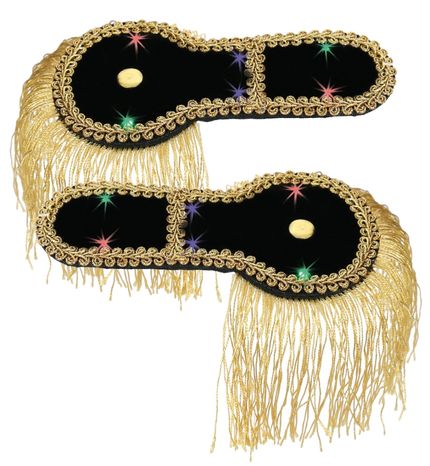 Blinkende LED Schulterklappen Schwarz mit goldener Zierborte und Fransen Epauletten