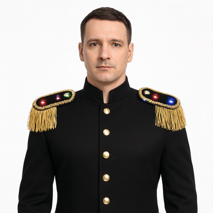 - Schwarze LED-Epauletten mit goldenen Details zum Anstecken