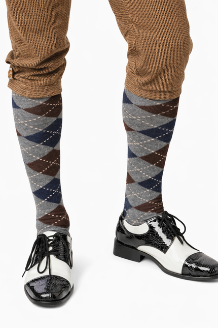 Ein unverzichtbares Kostüm-Zubehör zu unseren 20er Jahre Knickerbocker-Anzügen sind Kniestrümpfe mit Rautenmuster.