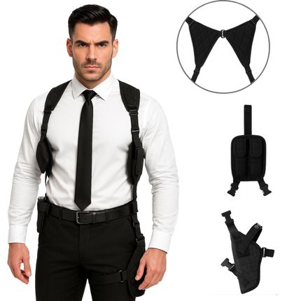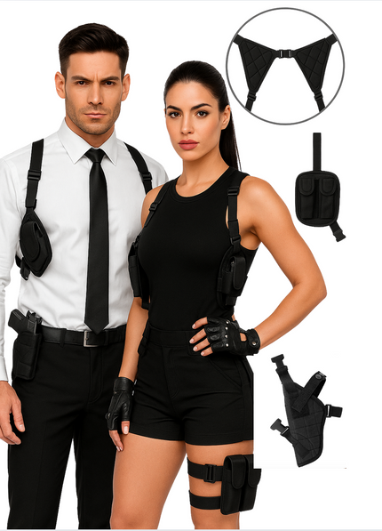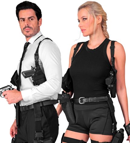 Ob als Polizei-, SWAT- oder Geheimagent-Accessoire: Das Unisex-Holster lässt sich vielseitig kombinieren – vom eleganten Hemd-&-Krawatte-Style bis zum sportlichen Action-Look.