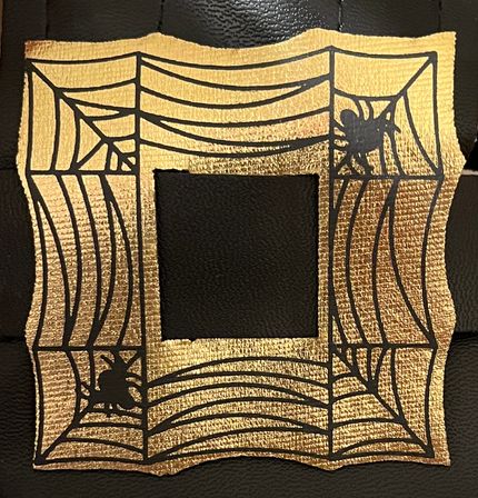 Das Highlight ist die Schnalle in Goldoptik mit schwarzen Spinnen und Spinnennetz.
