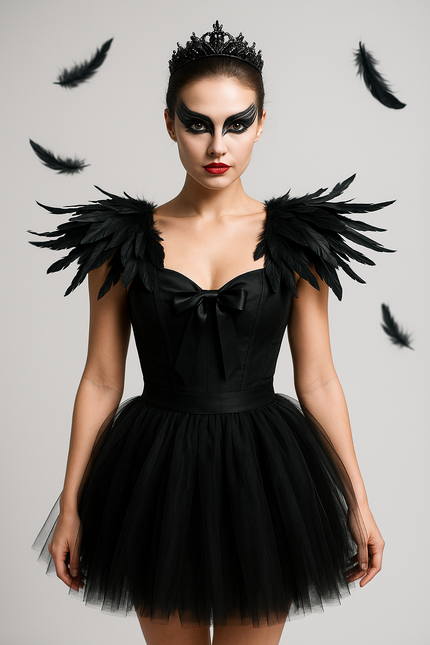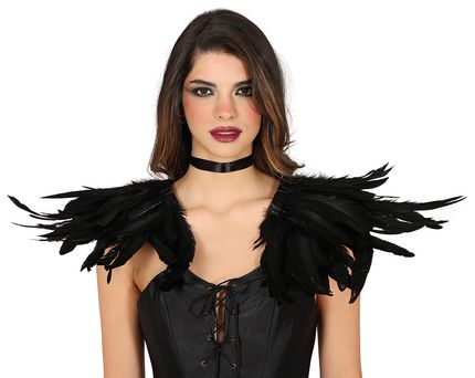 1 Paar schwarze Schulterpolster aus Federn passend zu Krieger-Kostümen, exotischen Vogel-Verkleidungen, Gothic-Outfits und Halloween.