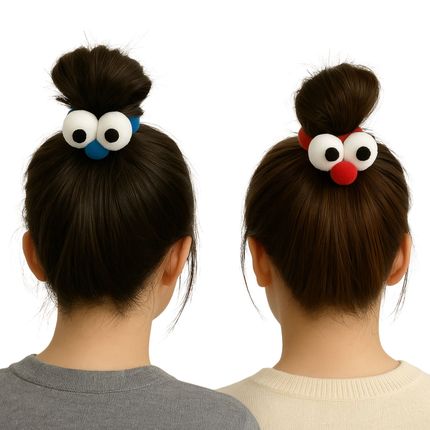 - Flauschig weiche Monster-Haargummis mit zwei lustigen Glubschaugen