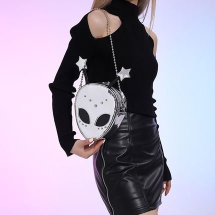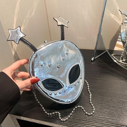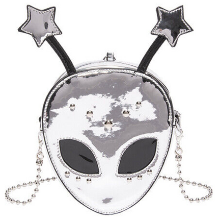 - Umhängetasche bzw. Hüfttasche aus glänzemden Material in Form eines Alienkopfes
