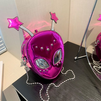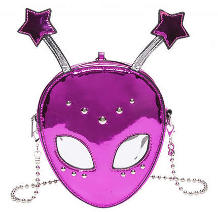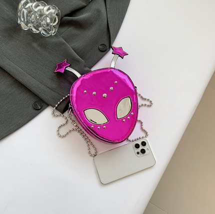 - Umhängetasche bzw. Hüfttasche aus glänzemden Material in Form eines Alienkopfes