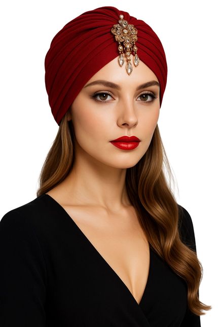 - Ausgefallener Turban mit broschenförmiger Strass-Applikation aus dehnbarem Stoff