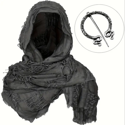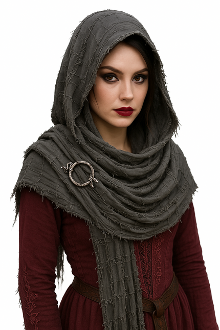 Mittelalter Renaissance Kapuzenschal mit Brosche Grau
