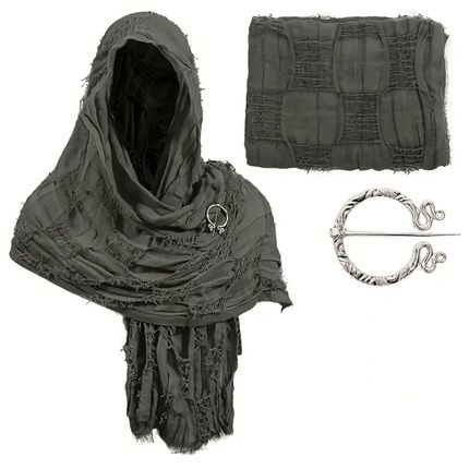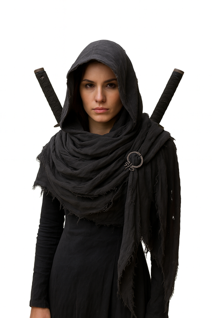 - Kapuzenumhang aus weichem Gazestoff mit silberner Schnalle
