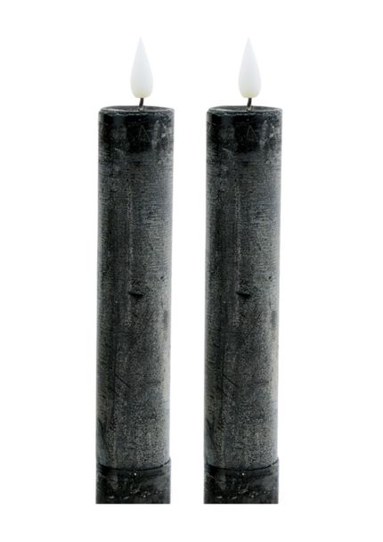 2er Pack Rustikale LED Wachs Stabkerzen H:20,5 cm Ø:3,5 cm mit Fernbedienung