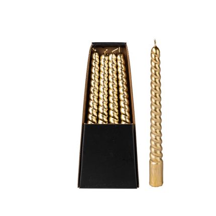4 gedrehte Spitzkerzen mit einer Brenndauer von ca. 6 Stunden.