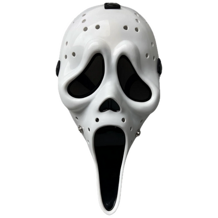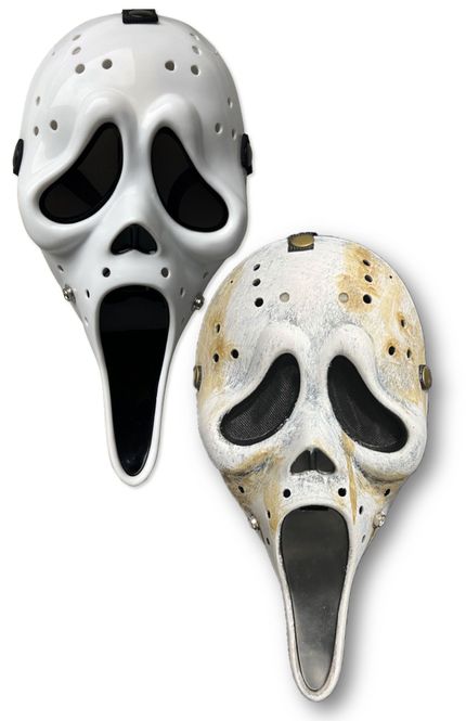 - Einzigartiger Mix: Ghost-Face-Form + Hockey-Masken-Details – humorvoller Verweis auf Slasher-Klassiker.